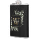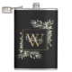 Elegant vattenfärgsgryn greenery löv blommigt monogram namn-kolv med en guld-monogramsstart på en svart bakgrund med ditt namn angivet i ett snyggt vitt skript. Designad av Thisisnotme©