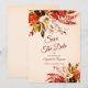Vålfärgsfärgade blommigtar, placerade över en blåstad elfenbensduk, avslutat med elegant kalligrafi av hösten. Det här sparar datuminbjudan är perfekt för både avslappnad och mer formella bröllop-motiv.