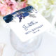 Elegantens 80:e födelsedagsfest-underlägg har en blommigt överst gräns i flotta blåa blommor och silver faux foil löv. Namn i hederskammaren visas i handskriftsskript för marin blå avslappnad, med den redigerbara åldern och det ändringsbara datumet nedan i blåssans serif-teckensnitt.