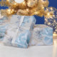 Blommigten Blått Silver-vattenfärg Presentpapper