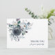 Elegant, handmålad blommigt bouquet-formgivning i dammig, klassisk blå, marin och lätt pastelliserad färg; ro, grönt, grenar. Lättförståelig mallbegravning, sympati, minnesmärke, bön TACK DU-kort; men ändå billiga kvalitetskort. Rum för att lägga till personligt meddelande.