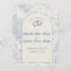 Rik Blue Fransk Blommigt Toile Blommigt Bröllopsinbjudan är ett sätt att få din bröllopsinbjudan att bli minnesvärd. Rikens blå och mjuka elfenben anger tonen för denna exceptionella bröllopsinbjudan. Toile är ett Fransk konstnärligt stil som har samma teckning som naturen och land.