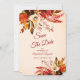 Vattenfärgsfärgad blommigt inslag på vacker höst färger, som är placerad över en rik blåslad elfenbensduk avslutat med höstens röda kalligrafi ...markera händelseinformationen i elegant, typsnitt som är en komplimang. Resultatet är en vacker designmatris som passar både för avslappnad och för mer formella bröllop-motiv. Para med matchande produkter för en komplett bröllop-svit.