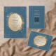 Blommigten Boho bröllopsinbjudan till marinen Guld Oval