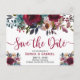 Blommigten Boho Burgundy Marsala Navy Spara datum Meddelande Vykort