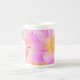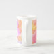 En mjuk och feminin benvävnad china mugg med en vattenfärgning av rosa- och aprikoblommor.