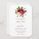 Ett vackert skript med en vacker burgundisk marsala-blommigt med vattenfärg och bröllopsinbjudan med lövbukett med en elegant blomma på baksidan.