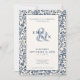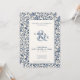 Fira din speciella dag med den här elegant blommigt bröllop-designen, som har ett klassiskt blommigt blue and kräm färg-schema. Den invecklade blommigten gräns tillför en aning tidlös sofistikering, perfekt för par att tittar framkalla en traditionell och graciös estetik för sin stora dag. Perfekt för trädgårdsbröllop eller vintage-tematiska ceremonier, den här designen anger tonen för ett romantiskt och intimt firande.