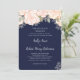 Ange tonen för marinblått bröllop med den här elegantens inbjudan med mjuka accenter för rosa i delikat vattenfärg. Designat med ett snyggt kalligrafiskt skript, tidlös typografi och lush botaniskt grönt löv, ger inbjudan en romantisk beröring till firande. Perfekt för par som vill ha en klassisk och formell design, den är sofistikerad och charm för ett verkligt minnesvärt evenemang.