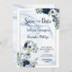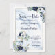 Meddela ditt bröllop-datum med den här eleganten, spara DATE-kortet med en vattenfärgsblå och vit ankare för guld i blommigt och blå marmorbakgrund i. Kontakta designern via Zazzle-Chattan eller makeitaboutyoustore@gmail.com om du vill att designen ska ändras, på en annan produkt eller om du vill samordna eller komplettera den.