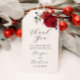 Elegant och modern bröllopsförmån märkre med vattenfärg som illustrerar marinens, burgundens och grönsakens peony.