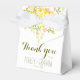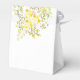 Fin bröllopsaffär i en glad gult och grönt färg-plan på en skarp vit bakgrund. Originalillustration av blommigt blommar och grönt på översta och bakre delen av lådan. Anpassa med din text, namn och bröllop. Perfekt för utomhusbröllop, vår, sommar, kväll eller trädgårdsbröllop.