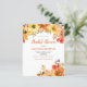 Budgeten brände orangens blommigt i inbjudningskort för möhippan under hösten. Lätt att ändra texten. Trendig, söt botaniskt vattenfärg. Perfekt för en höstmöhippa. Detta papper är tunnare än pappert kort.