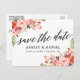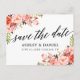 Modern Elegant Calligraphy, Watercolor Coral Blommigt Bröllop spara datum vycard