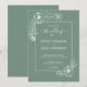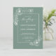 Elegant bröllop-inbjudan med en snyggt delikat vit blommigt kontur på en dammig grönt bakgrund med chic handskrivet manusgrafi och modern typografi. Lägg bara till dina uppgifter om namn och bröllop. Enbart designad för dig av Lycklig Dolphin Studio. Om du behöver hjälp eller matchande produkter kontaktar du oss happydolphinstudio@outlook.com. Vi är lycklig för att hjälpa dig att göra bröllop till den vackraste dagen!