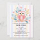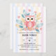 Den rosa uggla-babyduschinbjudan med arrangemang och mjuk blommigt i rosa, blått och gult. Perfekt för gender-neutralt eller flickduschar. Utskrivbara och anpassade! Om du behöver någon annan matchande produkt eller anpassning kan du skicka ett vänligt meddelande via Zazzle.