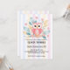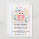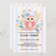 Den rosa uggla-babyduschinbjudan med arrangemang och mjuk blommigt i rosa, blått och gult. Perfekt för gender-neutralt eller flickduschar. Utskrivbara och anpassade! Om du behöver någon annan matchande produkt eller anpassning kan du skicka ett vänligt meddelande via Zazzle.