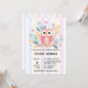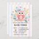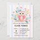 Den rosa uggla-babyduschinbjudan med arrangemang och mjuk blommigt i rosa, blått och gult. Perfekt för gender-neutralt eller flickduschar. Utskrivbara och anpassade! Om du behöver någon annan matchande produkt eller anpassning kan du skicka ett vänligt meddelande via Zazzle.