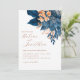 Blommigten Elegant bröllop vid marin blå rost Oran Inbjudningar