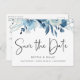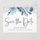Blommigten elegant Dusty Blue Navy Spara datum Meddelande Vykort