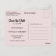 Meddela din speciella dag med vårt vackert designade vykort "Spara datum" med fantastiska blommigtar. Perfekt för bröllop. Med det här vykortet för anpassadet kan du lägga till datum för namn och bröllop och se till att gästerna markerar sina kalendrar. Den mjuka bakgrunden och typografin av rosa skapar en romantisk känsla och skapar det som ett perfekt val för alla par. Oavsett om du planerar ett badbröllop eller en trädgårdsceremoni, så kommer det här vykortet att ange tonen för firande. Ordna nu så att du lättare och mer snyggt kan planera bröllop!