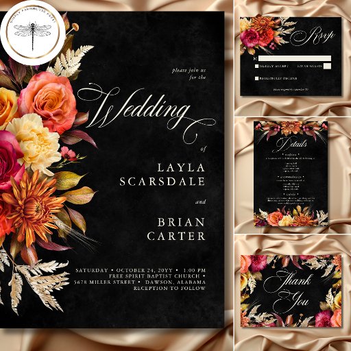 Blommigten elegant i Svart Vibrant Boho Bröllop Spara Datumet