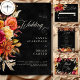 Gå in i en värld av elegans med vår boho blommigt mörk och moody bröllop spara datum kort. Designat för att fånga sinnena, skryter denna inbjudan med en slående svart bakgrund, försedd med en andningsspricka av pulserande blommigtar i djup burgundi, magenta, orange, guld och krämnyer, kompletterad med lush oliv grönt bladskal och boho-torkade botaniska ämnen. Skripttexten för den grå eleganten lägger på ett delikat sätt till en liten bit romantik till den totala färgen. Se till att rikens tonlägen är opulenta och ange tonen för din speciella dag med den här fantastiska designen, så att du lämnar ett bestående intryck på dina gäster. Skapat av Farmhouse Press.