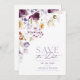 Meddela din speciella dag med den här eleganten "Spara datum"-kort med delikata blommigtar för vattenfärg i lila och elfenben. Perfekt för romantiska och tidlösa bröllop teman. Anpassningsbar information.