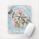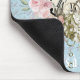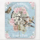 Välgörande och dekorativa frenchartade konstverk i modern vintage utseende, glansblått med handskriven brev, rosa blommor och söta fåglar och antika klockor hängande i mitten.