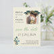 Blommigten Fall Blue och Guld Spara datumfotona. Det här moderna vykortet kommer att få deras uppmärksamhet Den vackra utformningen av contemporaryn: lägg till ditt foto