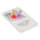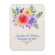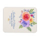 Bröllop spara datum flex-magnet med en fantasifull blommigt bukett med vattenfärgen ro. Snyggt, viskhet och kreativ. Ett paket ro i rosa, lila och gult. Med många spritar och löv i grönt, rosa, lila och blått. Bakgrunden är en gulvit champagne färg. 2 bröllop ringar som står under texten.