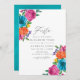 Filesta bröllopsinbjudan för vattenfärgen med blommigt med handskriftstypografi och turkoshattfärgning tvättar omvänd designad för att snabbt och enkelt anpassas till dina händelsespecifikationer.