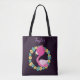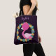 En underbar flamingo designad väska, det här objektet har en djup lila bakgrund med en färgstark blått och gult blommigt andedräkt. En rosa flamingo finns i tallriken. Ditt namn kan vara personlig högst upp. Beställ din i dag! Clipart: Pretygrafik design (https://www.etsy.com/shop/Prettygrafikdesign)