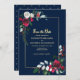 Blommigten Flottblå burgundy Guld Spara datum Inbjudningar