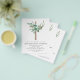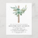 Budget Sage Grönt Girl's Blommigt Eucalyptus and Guld Wooden Kor Botanical Grey Watercolor Christian Religiösa Baptism Invations.