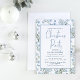 Bjuda juljägare i Party-Blommigten har en snyggt och färglös vattenfärgsblå fjäril-blommigt ram med din information om julfester i mitten. Redigera bara texten i textrutorna. Designad av ©Evco Helgdagars www.zazzle.com/store/evcoholidays