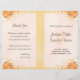 © Sunny Mars Design - Blommigt Hibiscus: Ivory och Guld på Peach Background Bi-Fold Bröllopsprograms - Denna programmall för anpassade personligt bröllp innehåller en illustration av en elfenbensformad och persikofärgad dekoration av hibiscus blommigt. Anpassa den genom att lägga till information om din bröllopsfest och bröllop-ceremoni. Fäst det här programmet på halva vägen för att göra det till en elegant häfte.