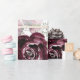 "Blommigt av vattenfärg Burgundy i marinskskript DeoupageWrapping Papper idealisk för Decoupage, Crawing och elegantge." Kontinuerligt lämnat och höger-vända konstruktioner som är idealiska för att dechiffrera på dörrar eller lådor på målade möbler. Elegant, löst målad, stiliserad blomma och lövmjuk har ett solt skript ephemera typografi över lagrar. Audrey Jeanne Roberts, upphovsrätt, är grafiskt designad av internationellt licensierad konstnär och formgivare.