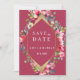 Den här fantastiska bröllopsinbjudan har en underbar vattenfärgpalett av burgundisk rosa, mynta, röd och guld, med geometrisk blommigt inslag. bröllop spara datum-inbjudningar är perfekt för alla klassmässiga och sofistikerade ceremonier. Den här krävande utformningen av eleganten är perfekt för trendiget och snyggten. Anpassa den här designen med information om meddelande och personlig. Alla designer skrivs ut.