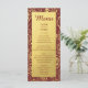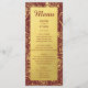 En lyxig design med dina menydetaljer på en guld-klassbakgrund med en ram som skildrar en romantisk blommigt i guld på en djup burgare. Du kan anpassa den genom att klicka på länken Custze (anpassa). Detta är en del av en klassad bröllop-svit med många matchande inslag.