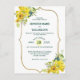 Bröllokskortet för söt och färsk vår gult-blommigt är perfekt för Vår bröllop eller sommar-Bröllop. Den här unika och elegant designen har ljusblommor i gult med blåbär och botaniska gröna accenter. Ett vykort för mjuk gult omges elegant av guld ram. Så söt och elegant för speciella bröllop med din familj och dina vänner.