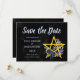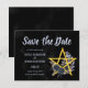 Skicka ett oförglömligt Spara datum med den här Anpassningsbarna Svart gotin Wiccan Blommigt Handfasting-malldesign som innehåller ett guld-pentacle med svart ro och gotisk blommigt inslag över en svart vattenfärgsbakgrund.