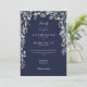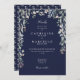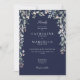 Vackra blommigtar, grönaktiga vilda blommor ram dina speciella uppgifter om bröllop firande i som är inskrivna i elegantens vita typografi på en chic marin blå bakgrund. Designad av Thisisnotme©