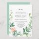 Ett grönt tema i bröllop med en myntbaksida och persikofärgade blommor med grönt löv. En perfekt för sommaren och bröllop. Du kan anpassa texten och färg-detaljerna på den här bröllopsinbjudningsmallen.