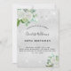 Blommigten greenery vid silver glitter vid födelse inbjudningar