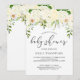 En vacker blommigt arrangemang av elfenben och krämvattenfärgshöljen, ro och peonier som sätts av med grönt visas ovanför ord "babyduschen" i handskript för elegant. Anpassa resten av texten till namn i mamma till att vara, datum, plats och OSA. Idealisk för en vår- eller sommarbabydusch. Se vår samling för babykläder i Blommigten om elfenben för att få information om hur du samordnar artiklar.