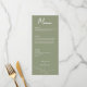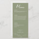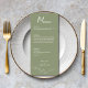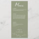 Den här Blommigten för Sage Grönt Formal Elegant bröllop Menu visar ömtåliga blommor i sidans grönt, med modern typografi och manusyrgrafi. Det är helt anpassade med parets namn, bröllop-datum, menyalternativ för varje kurs och utrymme för annan information på baksidan. Den formella utformningen och ordalydelsen kommer att tillföra ert firande i bröllop en viss elegans.