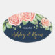 Den Blommigten Bröllop Klassisk Oval-märkning för marinblå Guld. Utformningen har en bukett med rosa ros med vattenfärg. Visa samlingslänken på den här sidan om du vill se alla matchande objekt i den här vackra designen.