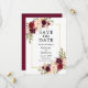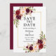Elegant Watercolor Burgundy Blommigt Save Date Förlovning Bröllop annoncement Card omfattar burgundy ro, rosa ros, röd ros och botaniskt grönt på guld ram.