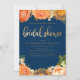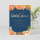 Guld & Orange blommigt Inbjudningskort för möhippan. Skapat med blommor med pulserande orange med faux guld-folie på en marin bakgrund som kan ändras till vilken färg som helst genom att använda verktygen "anpassa" på zazzle. Denna moderna blommigt Inbjudningskort för möhippan kommer att bli en vacker introduktion till er speciella bröllopsdag. Ytterligare samordningsutrustning för blommigt bröllop finns på MetroEvents på Zazzle. Designad av Metro-Events.com